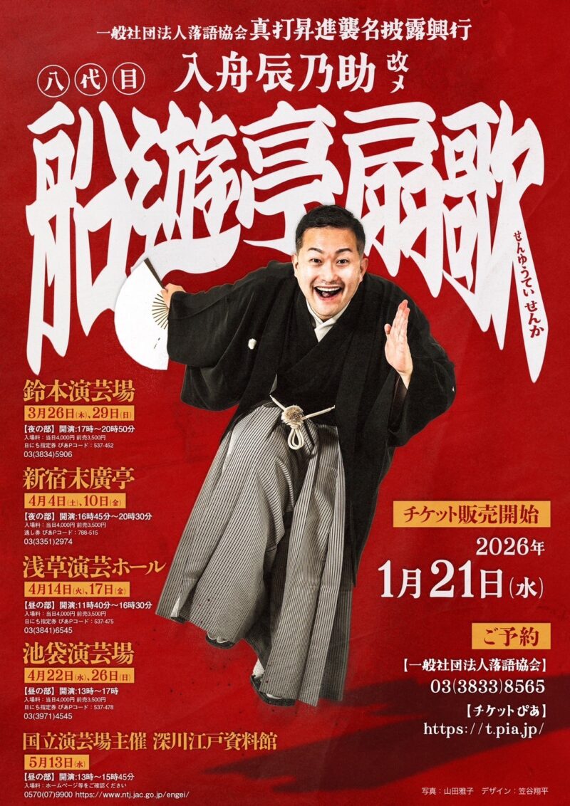 2012年3月に入船亭扇辰に入門 2012(平成24)年11月1日 前座となる 前座名「辰まき」 2014(平成26)年7月29日 「辰のこ」と改名 2017(平成29)年5月21日 二ツ目昇進「入舟辰乃助」と改名 2026年3月真打昇進し「八代目船遊亭扇歌」襲名予定